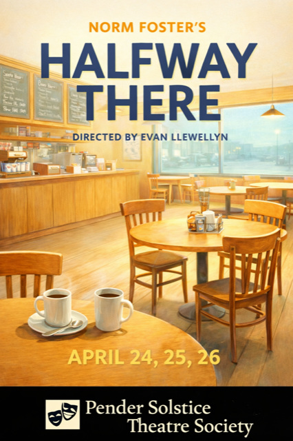 Halfway There will be presented at the Pender Island Community Hall, April 24th, 25th and for a Sunday matinee, April 26th. Online tickets will be available starting April 1st or through Talisman Books.